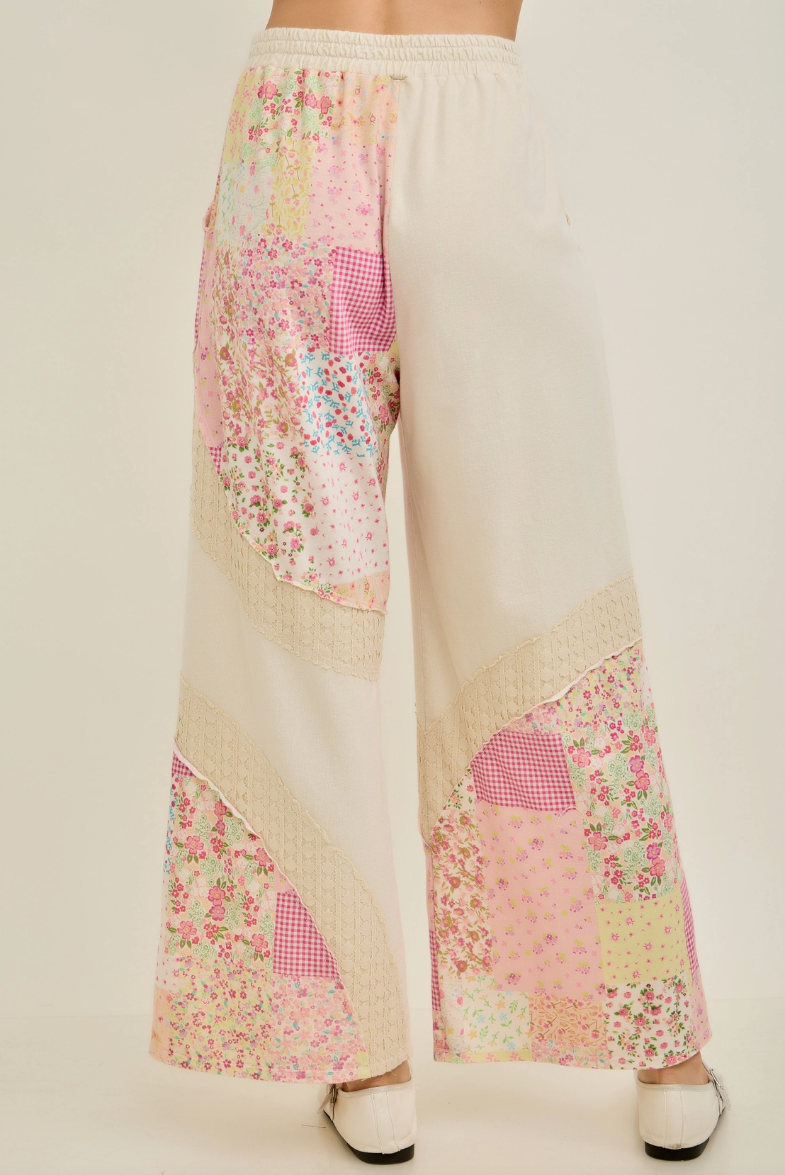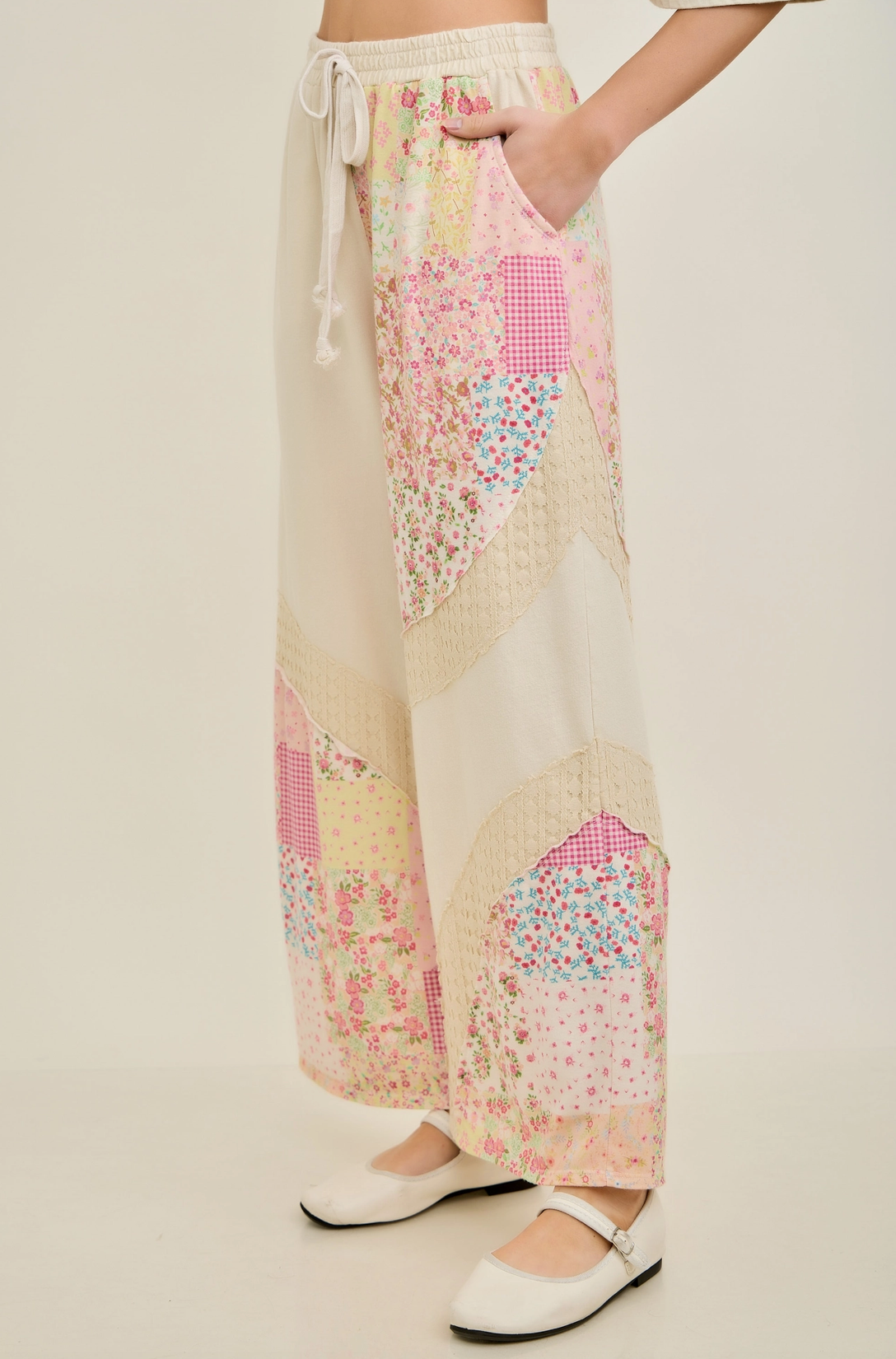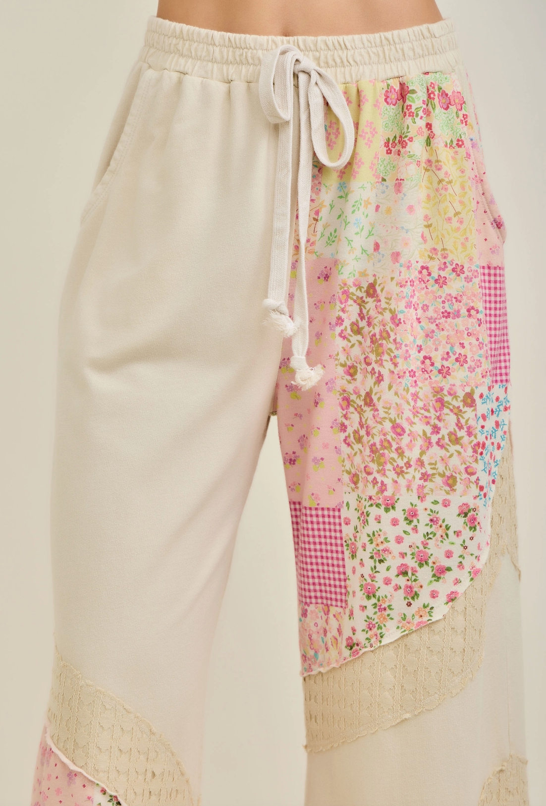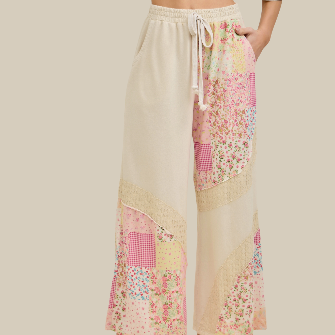 Mineral Washed Spring Picnic Print Lace Pants